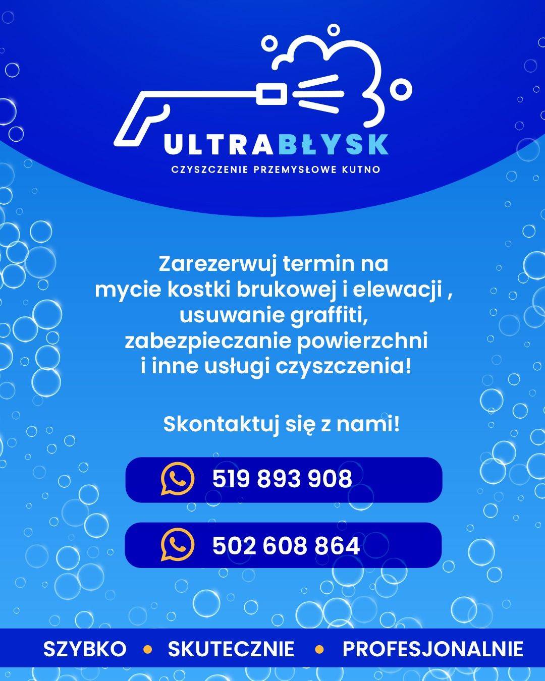 Ultra Błysk Kutno to firma specjalizująca się w profesjonalnym czyszczeniu i renowacji powierzchni zewnętrznych. W ofercie znajdują się m.in. mycie elewacji, dachów oraz kostki brukowej, wykonywane przy użyciu specjalistycznego sprzętu, który pozwala skutecznie usuwać zabrudzenia, osady oraz porosty.